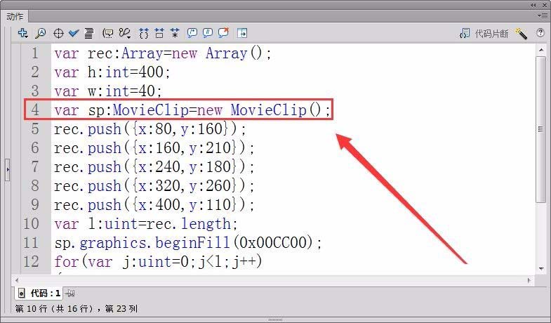 5、創建一個影片剪輯實例sp,用來繪制柱形圖。
