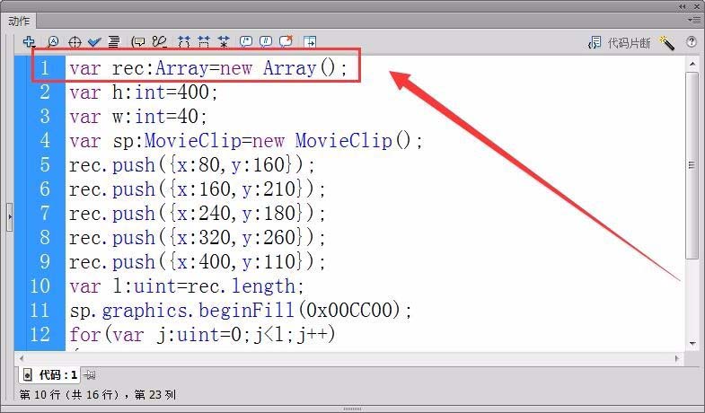 2、首先,創建一個數組實例,用變量rec引用該實例。