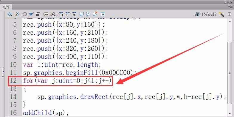 9、調用for循環語句,用來控制柱形的繪制,判斷條件為j小于數組長度。