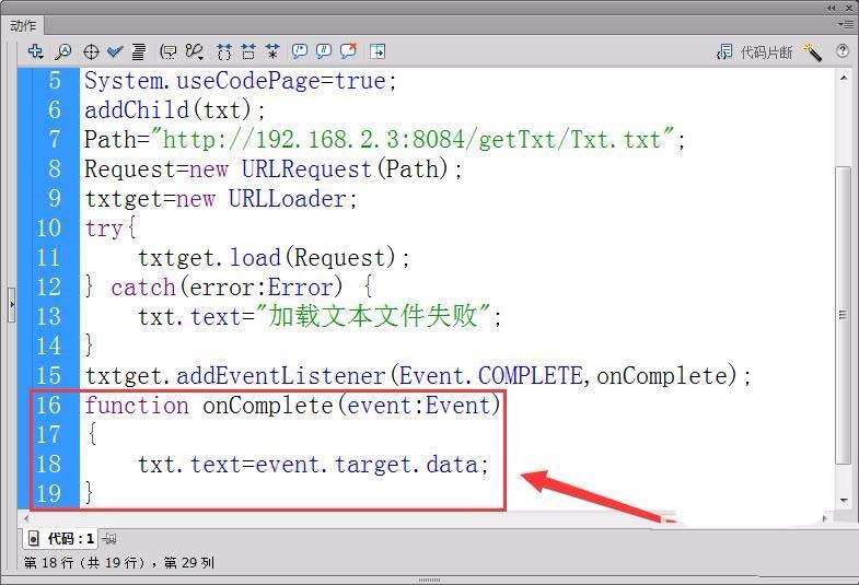 10、注冊實例txtget的complete事件的偵聽器,接收者函數為onComplete。