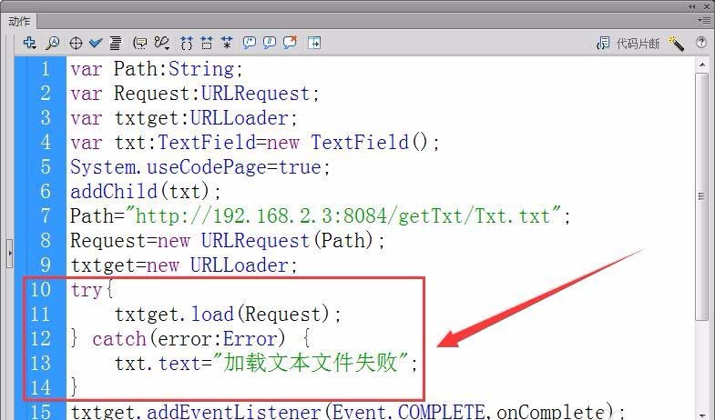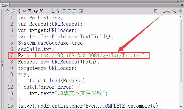 4、接著,定義一個URLRequest類型變量Request和一個URLLoader型變量txtget。