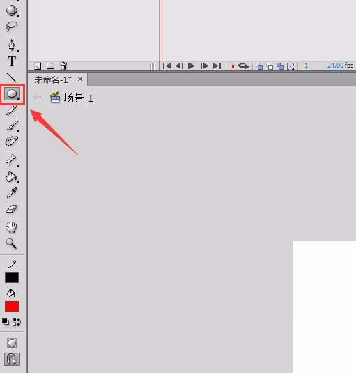 2、打開flash之后我們在工具箱內找到橢圓形工具,如圖所示: