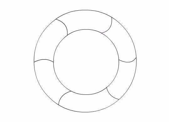 8、再在工具箱內找到顏料桶工具,并調節(jié)其顏色為紅色,然后依次在游泳圈上填充紅色和藍色,這樣我們的游泳圈就繪制好了,如圖所示: