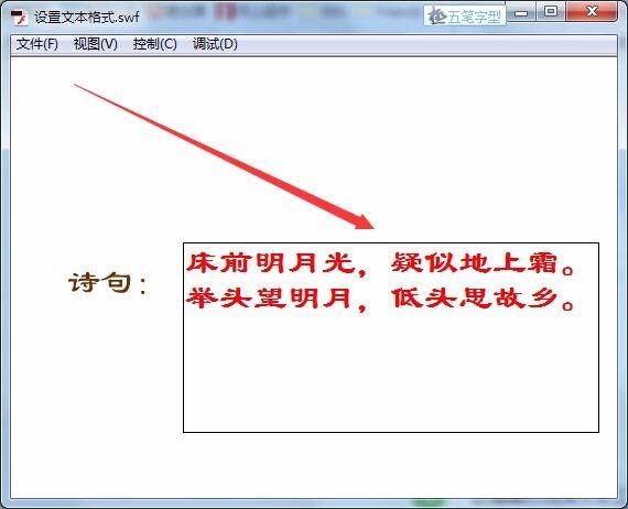 10、運行程序,可以看到舞臺中的文本已按照自己的需要設置輸出了。