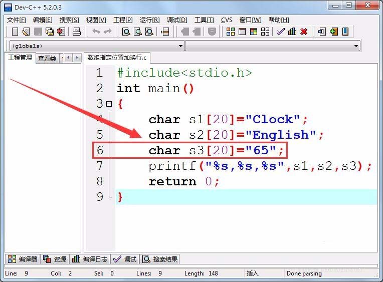 2、運行程序,可以看到在第二個數(shù)組的指定位置,添加了換行。