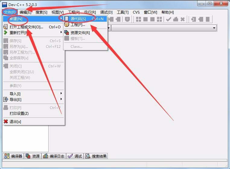 1、打開Dev-C++軟件,單擊“文件”---->“新建”---->“源代碼”,新建一個源文件。