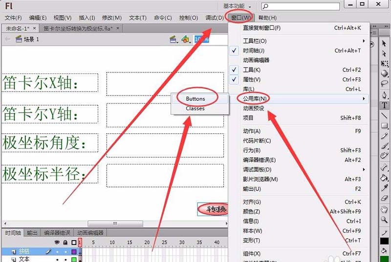flash舞臺想要實現通過按鈕轉換笛卡爾坐標與極坐標,該怎么實現這個功能呢?下面我們就來看看詳細的教程。
