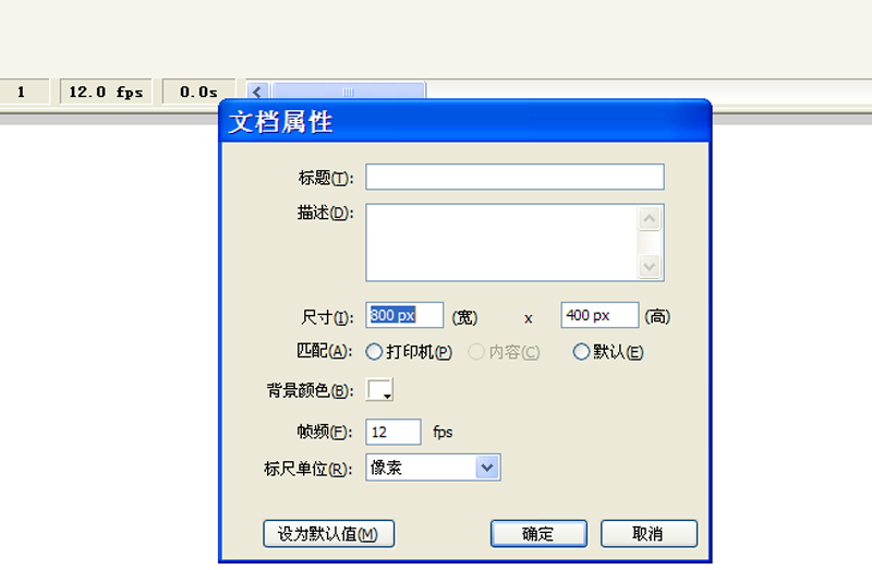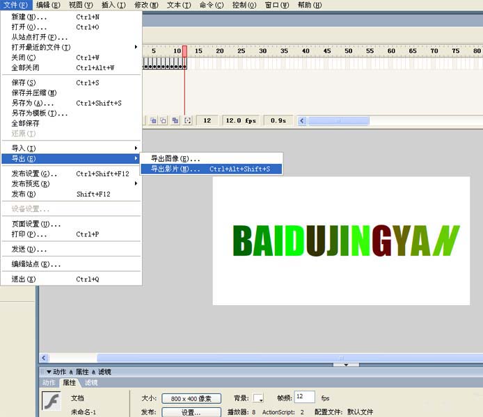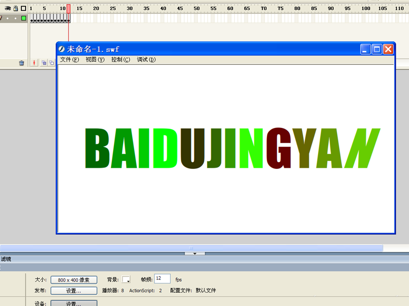 1、首先啟動flash8,新建一個文檔,設置大小為800*400,背景為白色,幀頻為12fps。