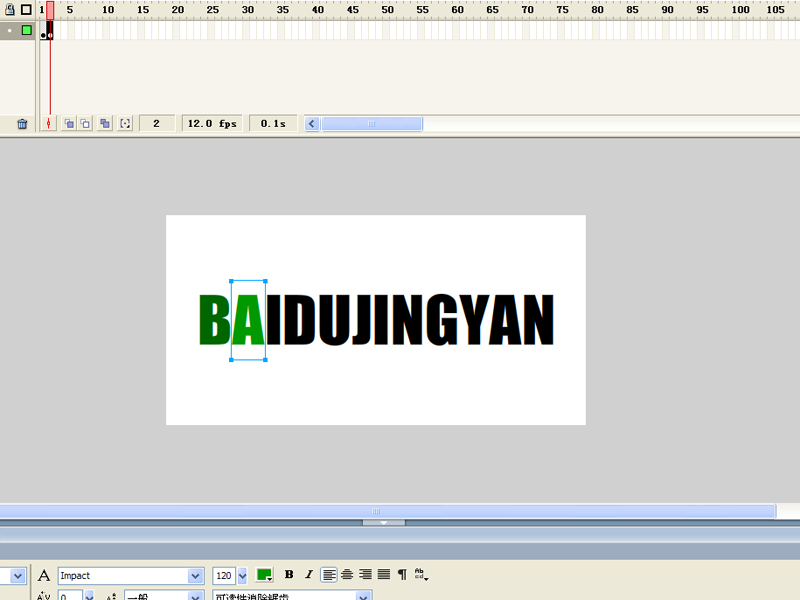 4、接著按f6鍵插入關鍵幀,修改第二個字母的顏色,可以根據自己的愛好進行設置。