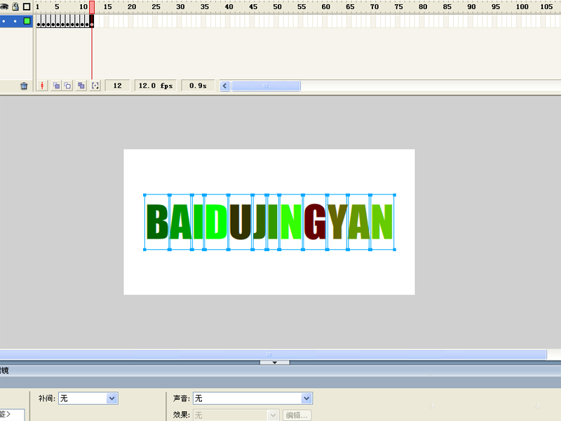 6、從第一幀開始,依次選擇相應的文字并設置字體為傾斜,執行ctrl+enter組合鍵測試動畫效果。