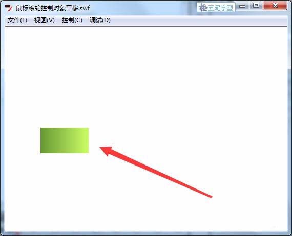 11、運行程序,當我們向上拖動滾輪,對象即向右水平運動。