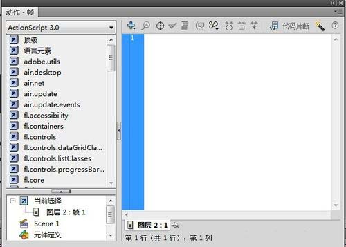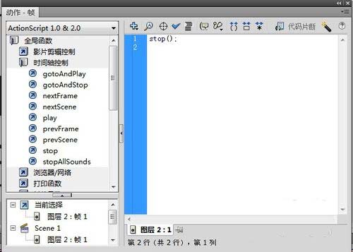 6、先是在上方我們選擇ActionScript 1.0&2.0的選項。這個是比較適合于不是專業制作動畫的用戶來進行命令的編輯的