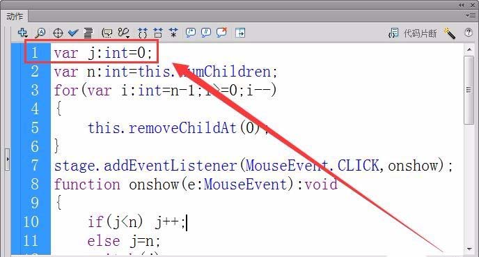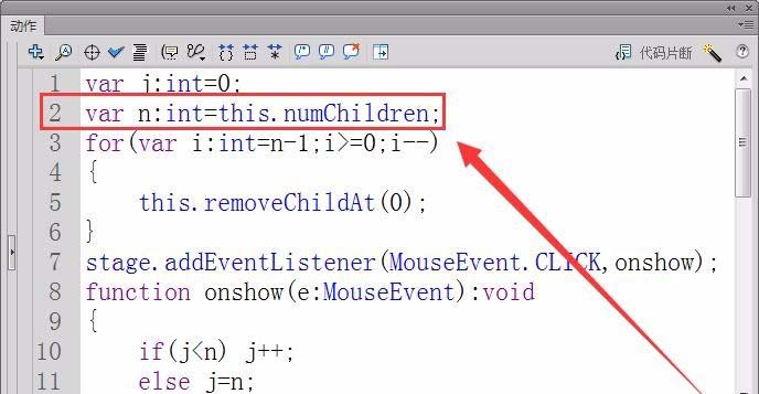 9、定義一個整型變量,用來存放舞臺中的星星總數,用numChildren函數獲取舞臺中的星星個數。