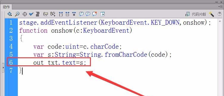 9、最后,在舞臺的動態文本框中顯示鍵盤鍵入的字符。