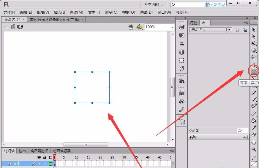 2、在“編輯欄”選擇“文本工具”,在舞臺中繪制一個文本框。