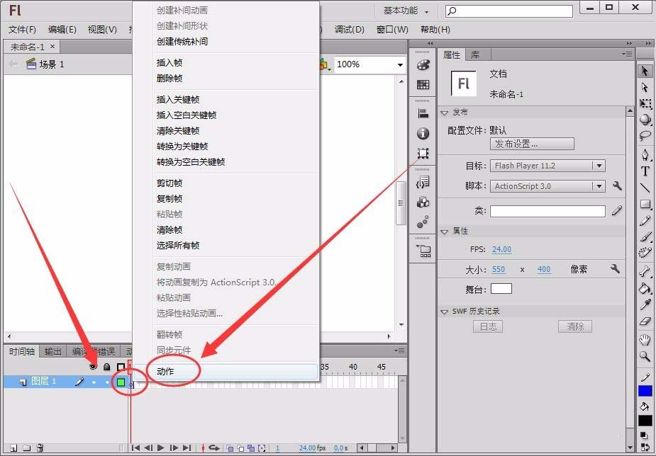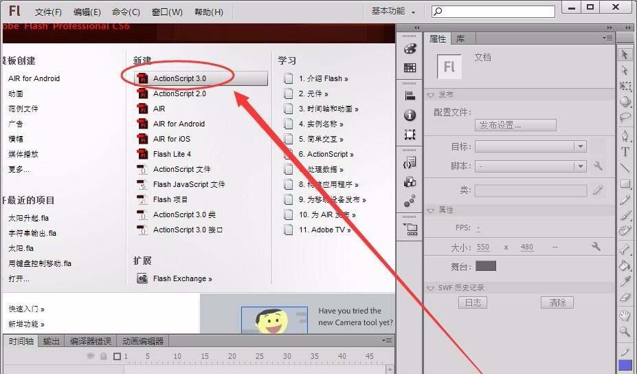 2、選擇“ActionScript3.0”選項,新建一個空白文檔。