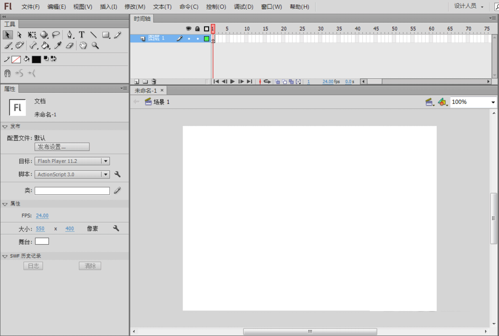 1、打開flash軟件,創(chuàng)建一個新的文檔