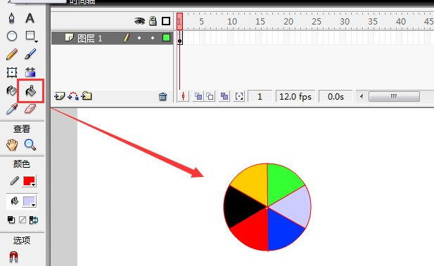 4、使用顏料桶工具給各扇形填充顏色,使它成為五光十色的彩輪。