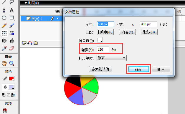 7、雙擊幀頻率顯示處,把幀頻率改為120每秒,這是允許最大的播放速度了。再次播放,果然效果不錯。旋轉奇快,形成彩輪。