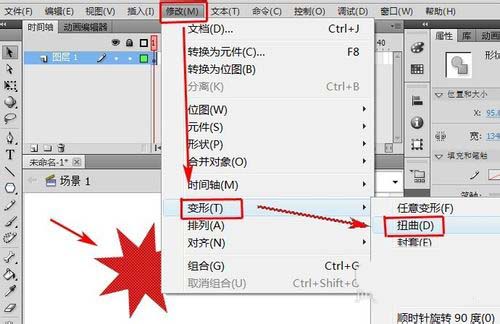 4、選中圖形,在菜單欄中單擊“修改”,在彈出的菜單中選擇“變形”—“扭曲”