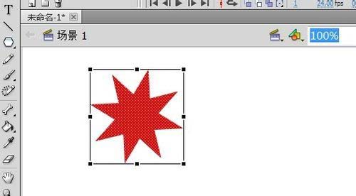 3、在工具欄選擇“多角星形工具”,利用“多角星形工具”中“星形樣式”在舞臺中拖出一個八角星。