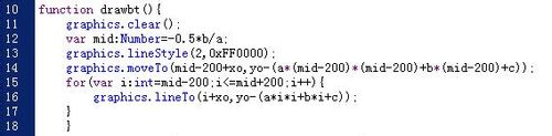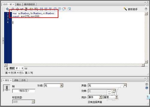 5、下面開始編輯代碼,先定義好變量和常量,變量就是方程系數,常量是坐標原點在舞臺上的坐標