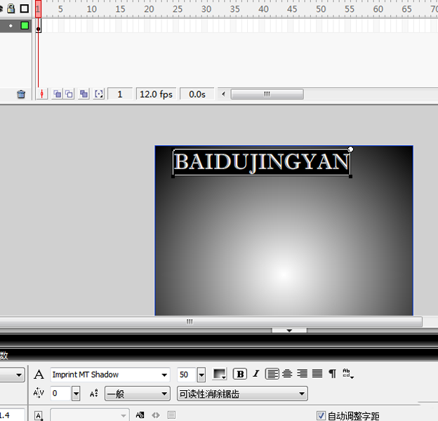 3、接著選擇文本工具并輸入文本內容,設置字體為Imprint MT Shadow,字號為50.