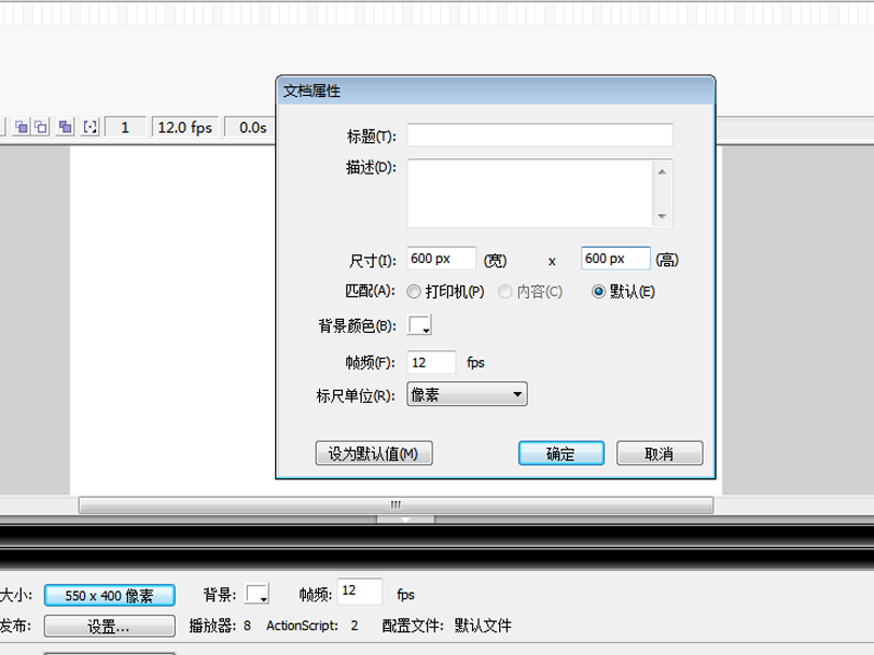 1、首先啟動flash8,新建一文檔,設置大小為800*800,背景顏色為白色,幀頻為12fps