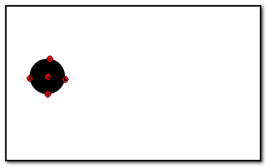 6、這時,正圓上顯出一個紅色圖標。鼠標放在此圖標上,鼠標變成白色箭頭右下方帶著一個+字。鼠標點住形狀提示圖標,按住CTRL鍵,移到正圓的邊上。這時,就復制出另一個形狀提示圖標,如此操作,在圓的四個方向分別添加形狀提示。形狀提示圖標是有編號的,首先第一個添加的為a,第二個添加的為b,如些類推。