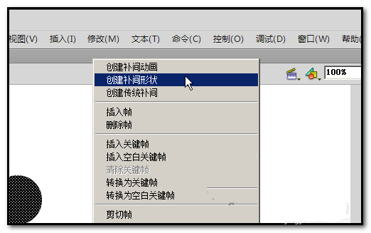 5、如果添加形狀提示,將會有不同的效果。下面,我們一起來看下具體操作。用選擇在第1幀這里點下,然后,在菜單欄中順序點:修改-形狀-添加形狀提示