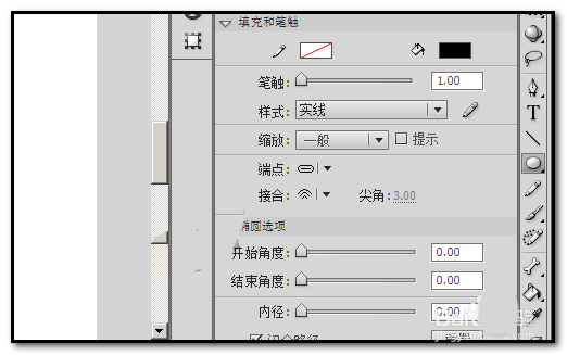 1、在本文中,會以一個案例來演示,怎樣添加形狀提示,以及添加形狀提示有什么用。比如,制作一個正圓轉為矩形的轉換過程。選取橢圓工具,設置為無筆觸顏色,填充顏色為黑色。