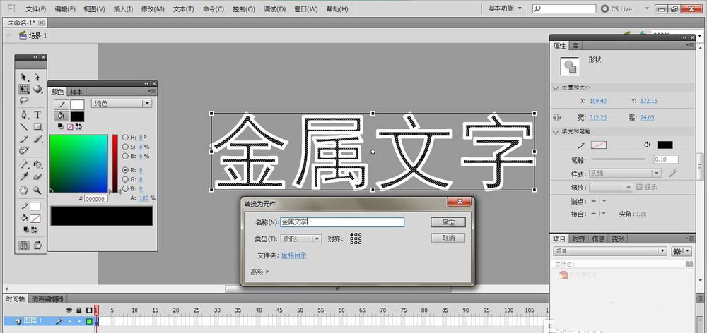 3、將黑色文字部分選中并轉化為名為“金屬文字”的圖形元件。