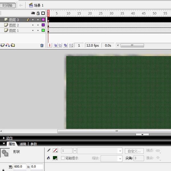 7、在圖層3的70幀處插入關(guān)鍵幀,修改屬性面板中x的值為600,接著選擇1-70中的任意一幀,修改屬性面板中的補(bǔ)間為形狀。