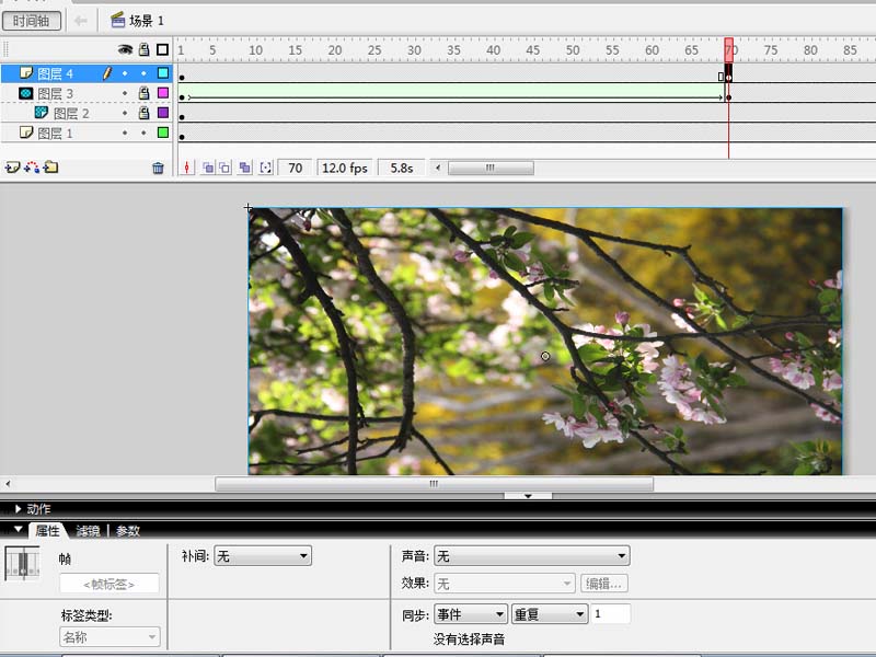 9、新建圖層4,復(fù)制圖層1的第一幀粘貼到圖層4的第一幀,并在第70幀處插入關(guān)鍵幀。