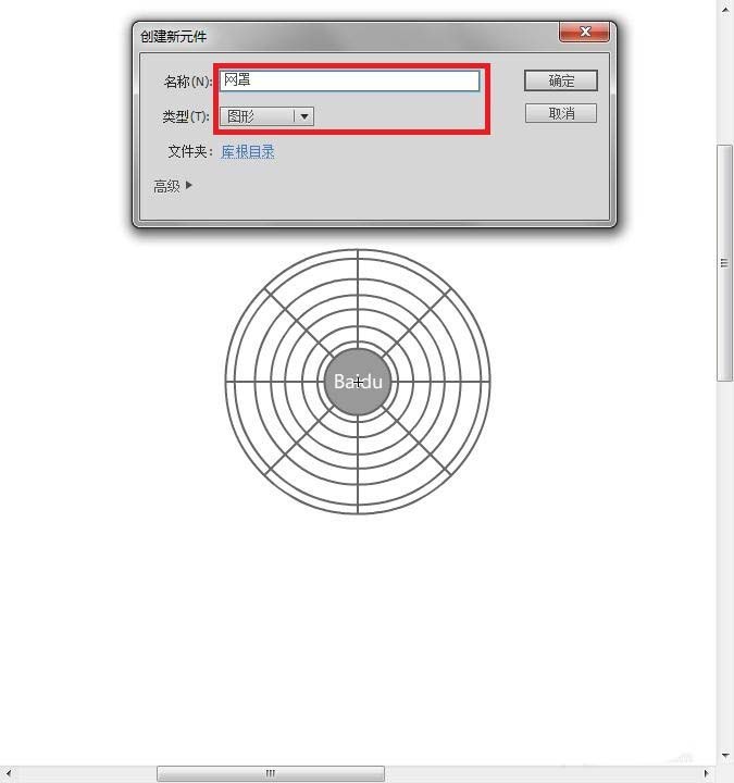 6、新建一個名為“網罩”的圖形元件,并繪制網罩。