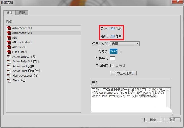1、新建文檔,寬高為:500*700像素,振頻率為:24fps,其他默認。