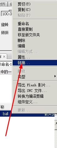 4、在庫面板中,找到ball這個元件,右鍵單擊該元件,然后在菜單中選擇【鏈接】