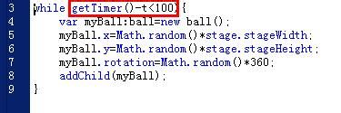 8、假設我們要在100ms中創(chuàng)建實例,我們需要將while循環(huán)中的條件設置為getTimer()-t<100