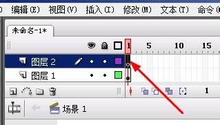 6、新建一個圖層2,作為專門存放as腳本的層,選中第一幀,然后按下F9打開動作面板