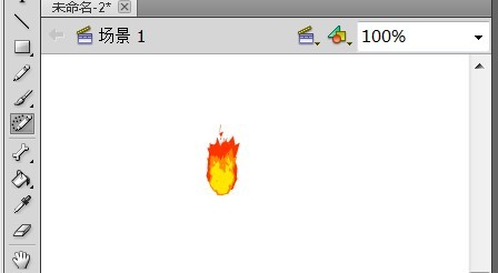6、在舞臺(tái)上任意地方單擊,火焰的動(dòng)畫自動(dòng)生成了。
