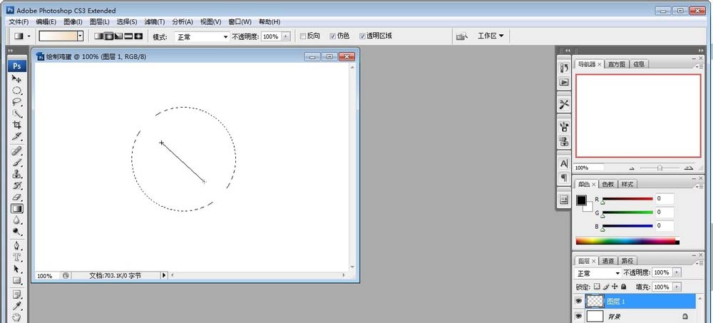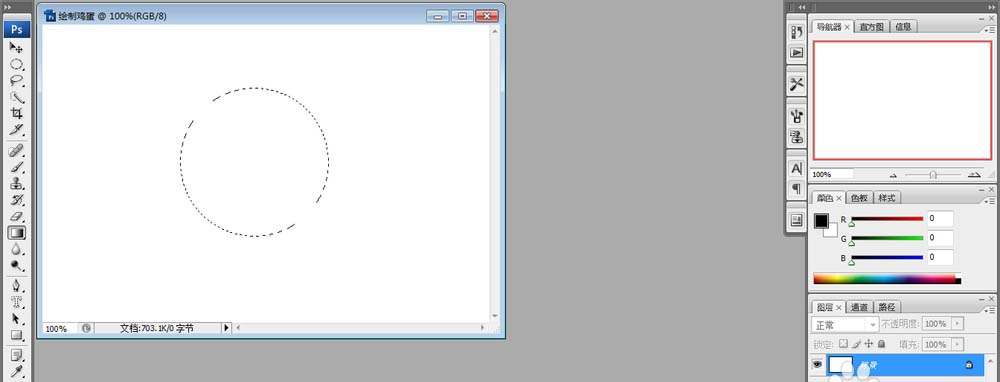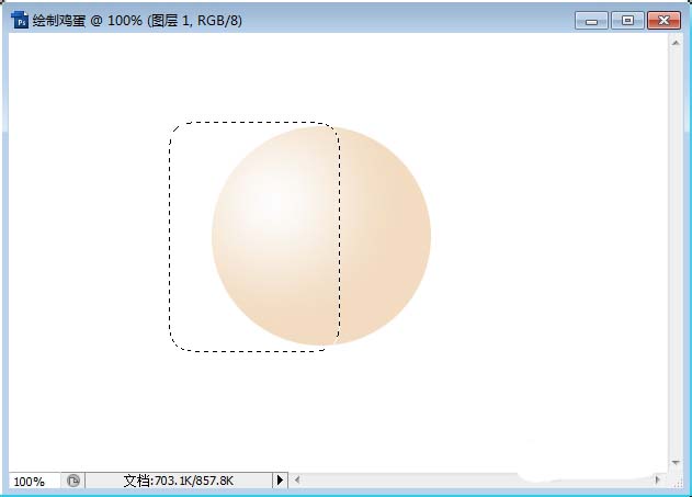 2、單擊工具箱中的“橢圓選框工具”按鈕,按住“shift 鍵的同時拖動鼠標,在圖像中創(chuàng)建正圓選取。