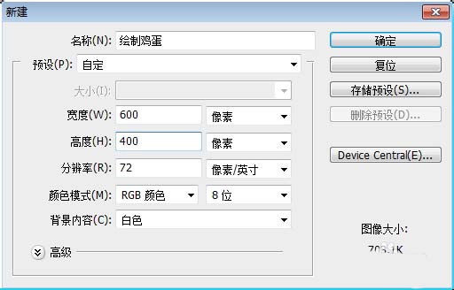 1、選擇“文件”下的“新建”命令,彈出新建對話框,設(shè)置參數(shù)如下圖,設(shè)置完成后,單擊“確定”按鈕。