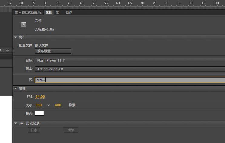 6、新建一個actionscript3.0類文件,是白色的標識,類名稱為nihao,因為我們等下要定義的量就是nihao