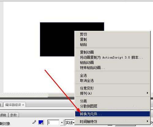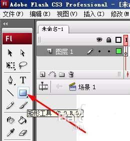 2、選在工具面板上的矩形工具,繪制一個(gè)黑色的矩形,想要在as語(yǔ)言中操縱該元件需要給其添加實(shí)例名,也就是起一個(gè)名字