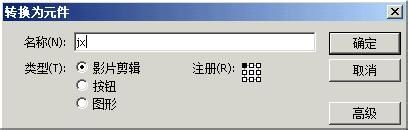 4、在打開(kāi)的對(duì)話框中,設(shè)置名稱為jx1,記住這個(gè)名稱,一會(huì)還要用到。將類型設(shè)置為影片剪輯