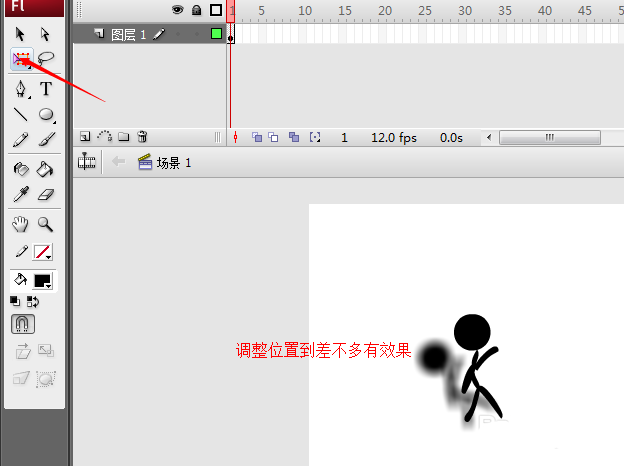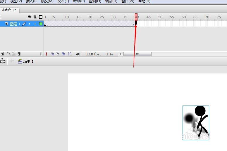 8、又是在40幀處插入一個關鍵幀,為什么說又呢...咳咳,接下來我們再中插入補間動畫,然后把40幀處的小人移到右邊大概400碼。OK!小人加影子就做好了,效果很酷炫呢!大家可以試試!