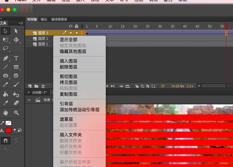 10、選中第三層中其中一幀,右擊創建傳統補間,然后將這個圖層轉化為遮罩層