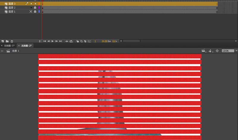 7、在這一圖層中我們設置的是遮罩的部分,選擇矩形工具,去除邊框,顏色什么都可以,畫出第一個矩形,然后打散,按住ALT鍵直接復制,然后成倍復制,知道填滿