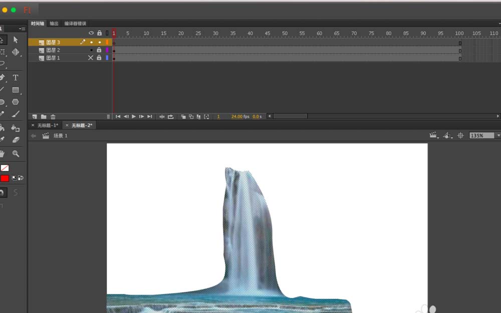 9、在第100幀出添加關鍵幀,然后按住shift,將元件下移到水流出現的地方