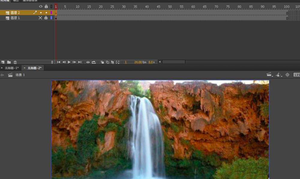 4、在第100幀的時候添加幀,然后新建一個圖層,將圖層一的圖片原封不動的復制過來,這時候也是100幀,將圖層一鎖定并且關閉眼睛,選中圖層二的圖片,打散,快捷鍵CTRL+B